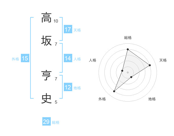 高坂 亨史さんの総格は29画の4点!