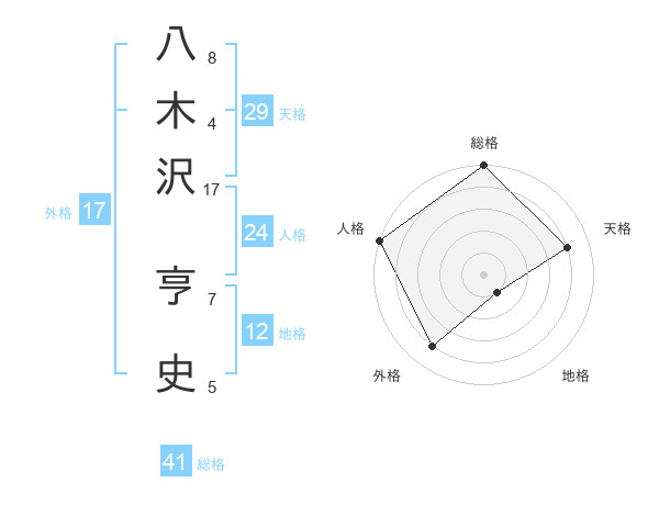 八木沢 亨史さんを姓名の画数から五運を鑑定