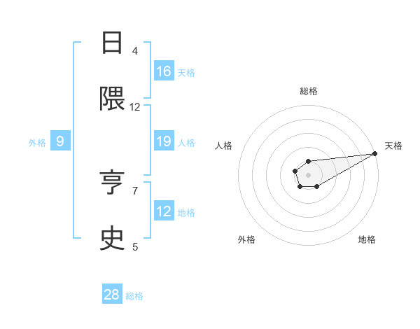 日隈 亨史さんの天格は16画の5点!