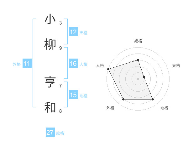 小柳 亨和さんの総格は27画の3点!