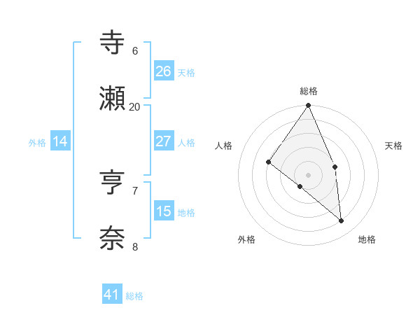 寺瀬 亨奈さんの総格は41画の5点!