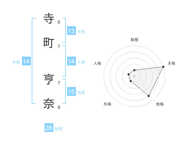 寺町 亨奈さんを姓名の画数から五運を鑑定
