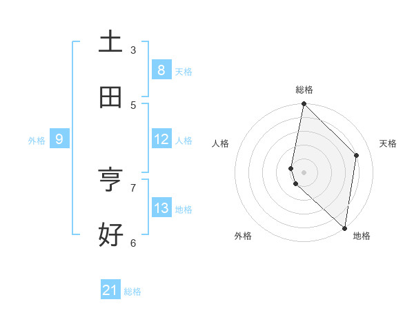 土田 亨好さんの総格は21画の5点!