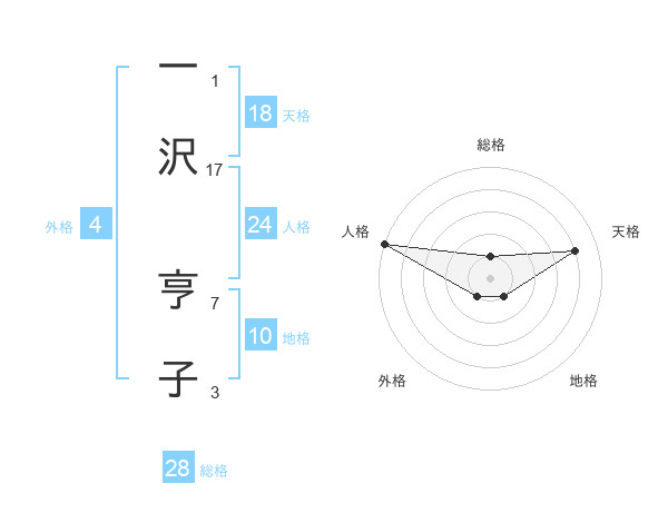 一沢 亨子さんを姓名の画数から五運を鑑定