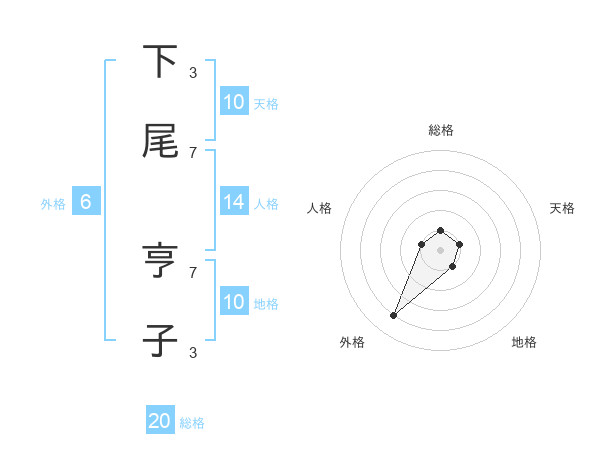 下尾 亨子さんを姓名の画数から五運を鑑定
