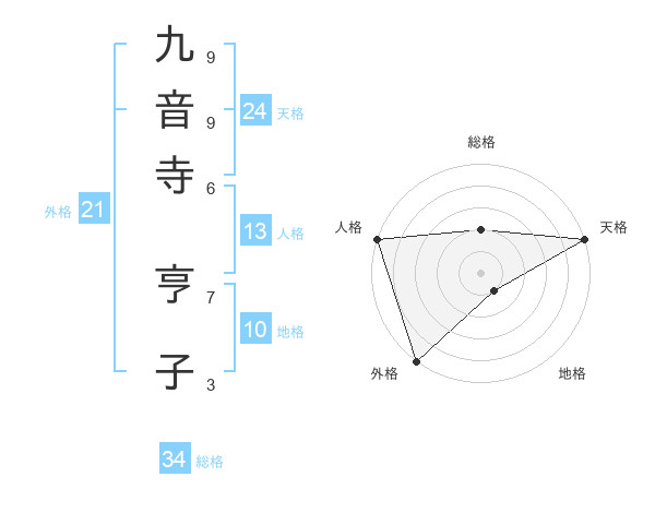 九音寺 亨子さんを姓名の画数から五運を鑑定