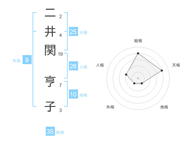 二井関 亨子さんの総格は35画の4点!