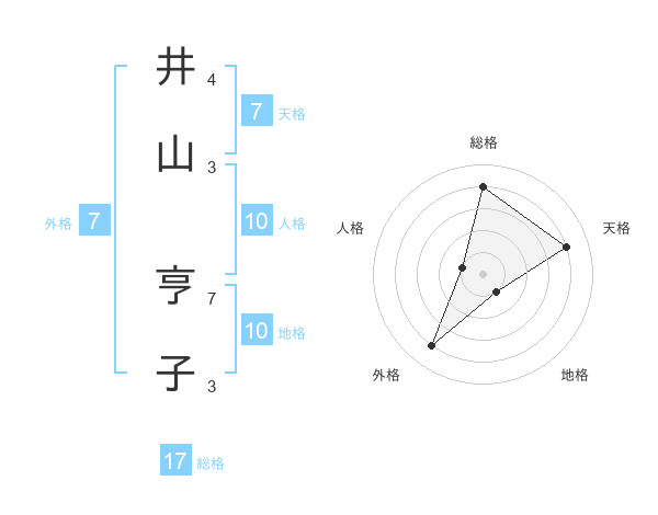 井山 亨子さんの総格は17画の4点!