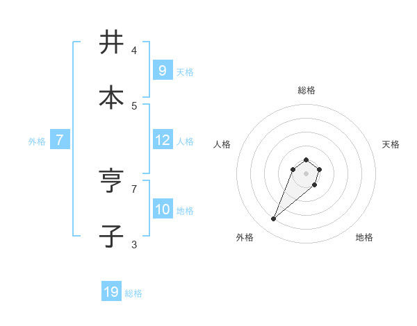 井本 亨子さんの外格は7画の4点!