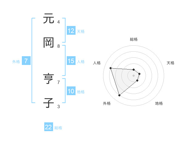 元岡 亨子さんを姓名の画数から五運を鑑定