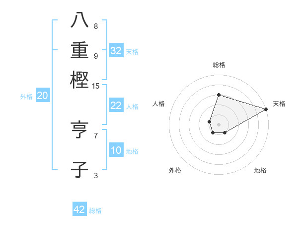 八重樫 亨子さんの天格は32画の5点!