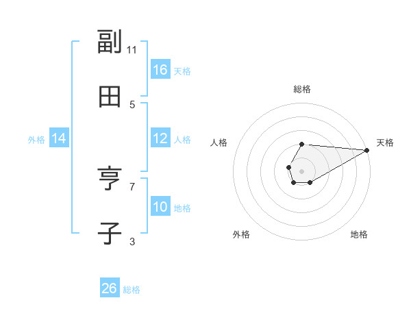 副田 亨子さんの天格は16画の5点!
