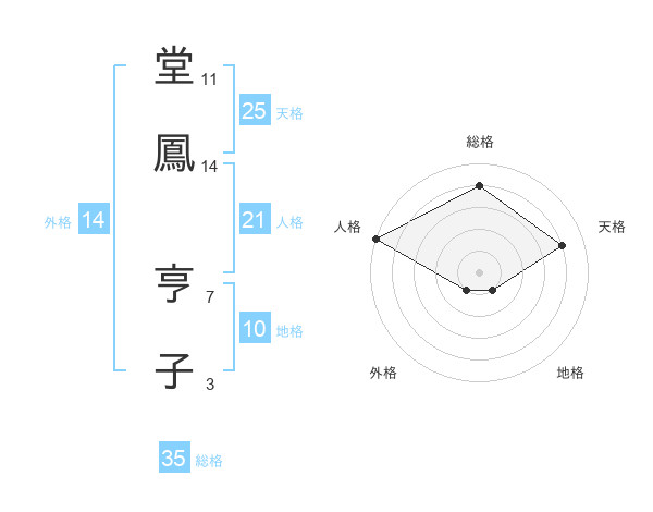 堂鳳 亨子さんを姓名の画数から五運を鑑定