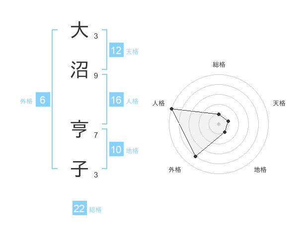 大沼 亨子さんを姓名の画数から五運を鑑定