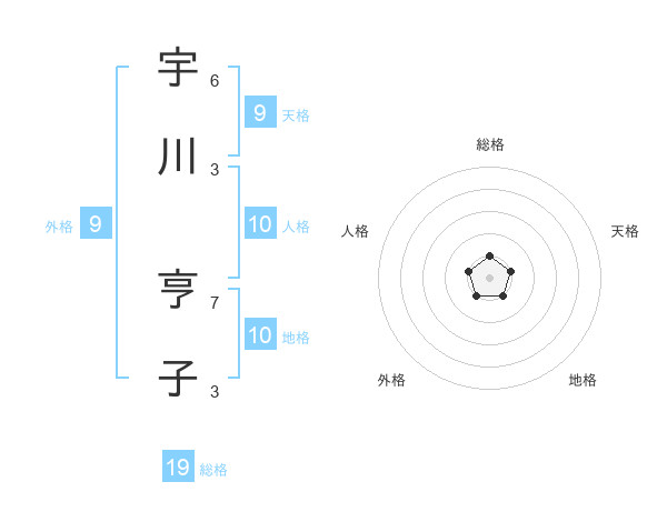 宇川 亨子さんの総格は19画の1点!