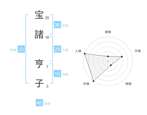 宝諸 亨子さんの天格は36画の3点!
