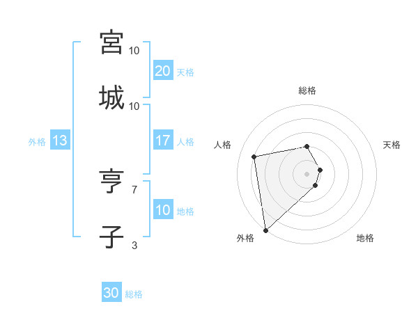 宮城 亨子さんの総格は30画の2点!