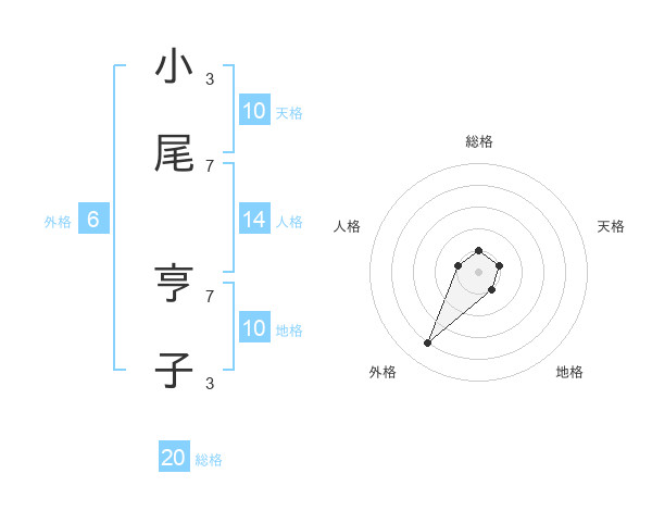 小尾 亨子さんの総格は20画の1点!