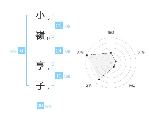 小嶺 亨子さんの天格は20画の1点!