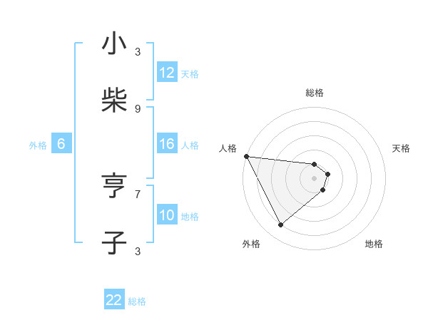 小柴 亨子さんの天格は12画の1点!