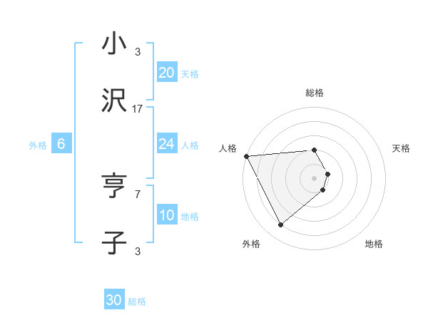 小沢 亨子さんを姓名の画数から五運を鑑定