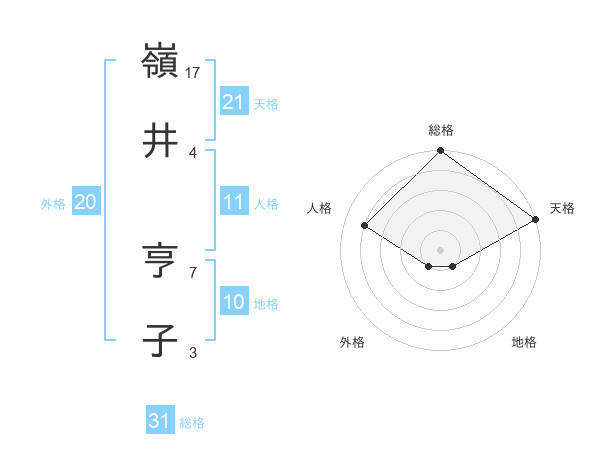 嶺井 亨子さんの天格は21画の5点!