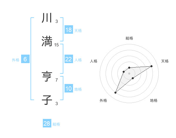 川満 亨子さんの天格は18画の4点!