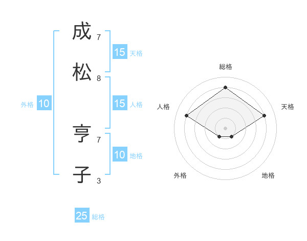 成松 亨子さんの天格は15画の4点!