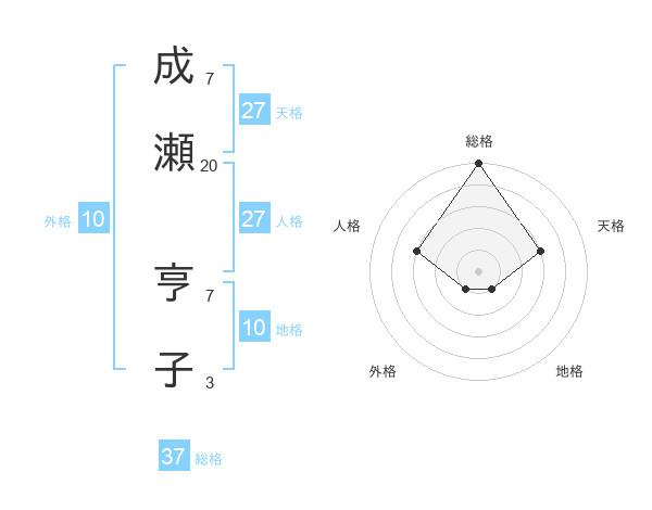 成瀬 亨子さんの総格は37画の5点!