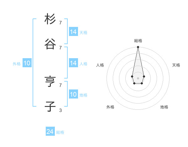 杉谷 亨子さんを姓名の画数から五運を鑑定