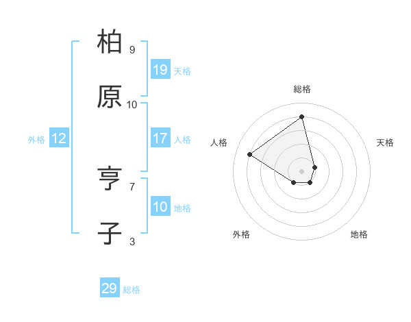 柏原 亨子さんを姓名の画数から五運を鑑定