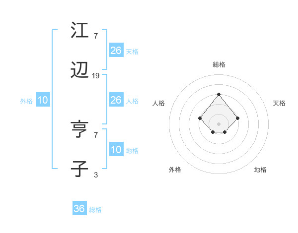 江辺 亨子さんの天格は26画の2点!