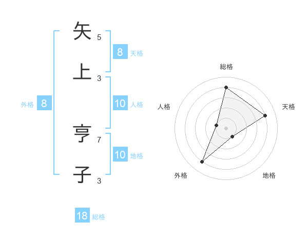 矢上 亨子さんの天格は8画の4点!