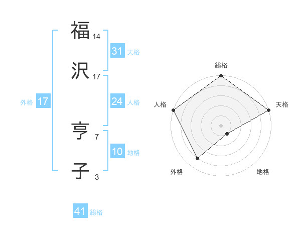 福沢 亨子さんを姓名の画数から五運を鑑定