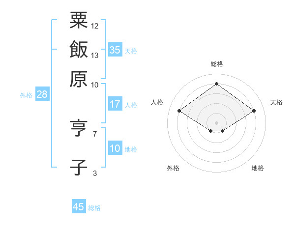粟飯原 亨子さんを姓名の画数から五運を鑑定