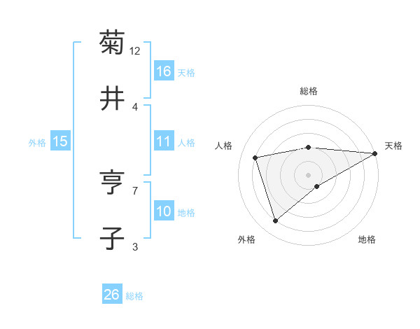 菊井 亨子さんの天格は16画の5点!