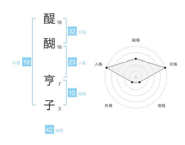 醍醐 亨子さんの天格は32画の5点!