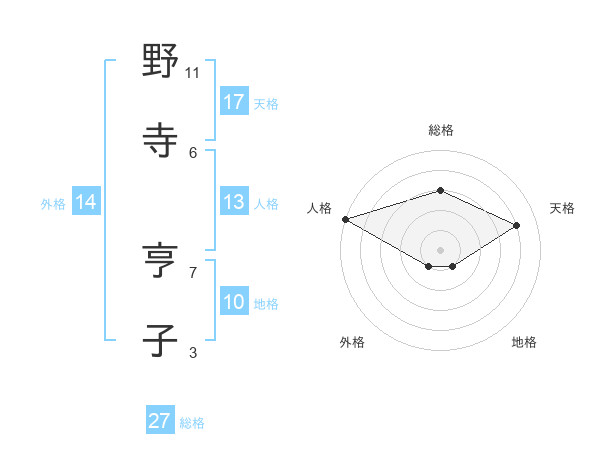 野寺 亨子さんの天格は17画の4点!