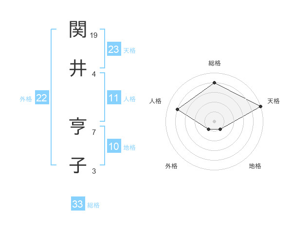 関井 亨子さんの総格は33画の4点!