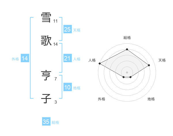 雪歌 亨子さんを姓名の画数から五運を鑑定