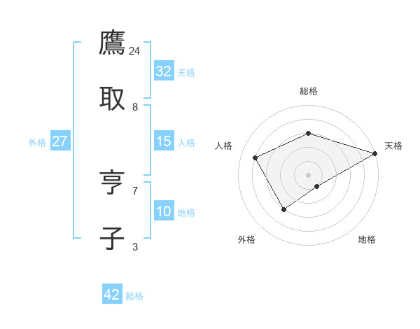 鷹取 亨子さんを姓名の画数から五運を鑑定