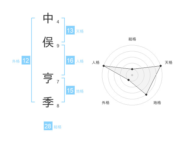 中俣 亨季さんの天格は13画の5点!
