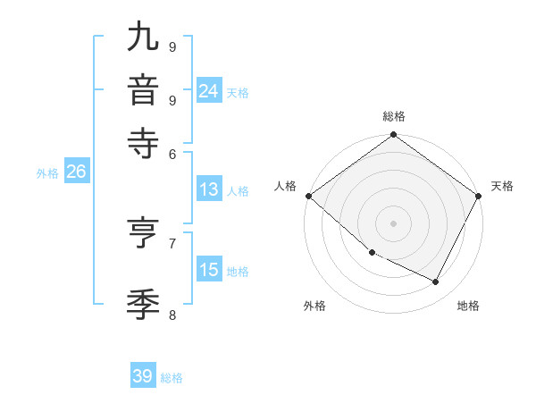 九音寺 亨季さんを姓名の画数から五運を鑑定