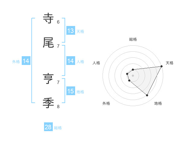 寺尾 亨季さんの天格は13画の5点!