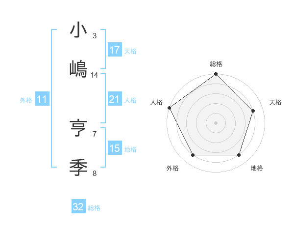 小嶋 亨季さんを姓名の画数から五運を鑑定