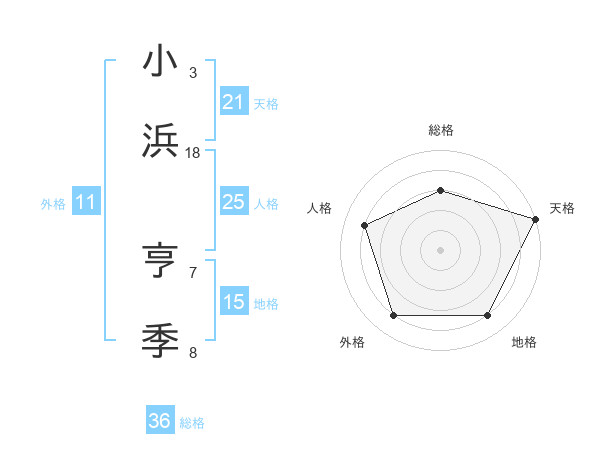 小浜 亨季さんを姓名の画数から五運を鑑定