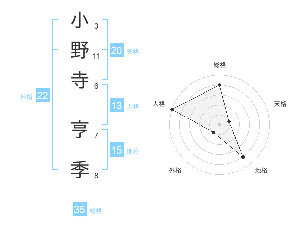 小野寺 亨季さんの総格は35画の4点!