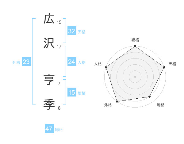 広沢 亨季さんの外格は23画の5点!