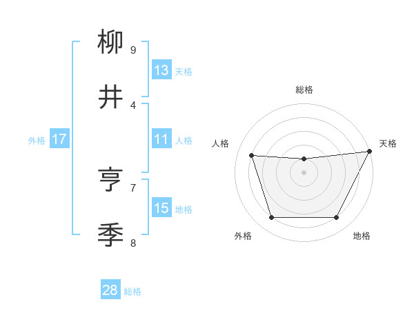 柳井 亨季さんの天格は13画の5点!