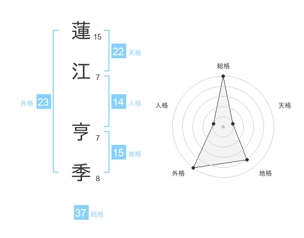 蓮江 亨季さんの総格は37画の5点!